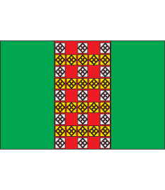 "Gules; vert flanks. Argent and or scarf patten. In the