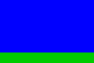 "Per fess by abaised wavy barrulet argent on azure and vert.