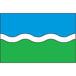 "Per fess by argent wavy fillet on azure and vert. Orthodox