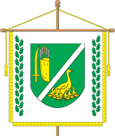 gules eight-beam star. Swan with six baby swans, all with beaks