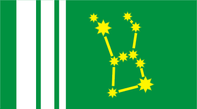 Ratio 1:1,8. Green field with three white vertical stripes near