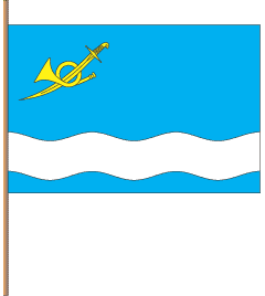 motto "JOB AND WELL-BEING". The argent wavy fess means