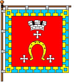 cross there is white town crown. Four sides of the gonfalon have