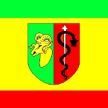 sides 1:1, in the yellow field is city emblem. In top and bottom