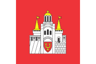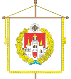 Bishop's gate and Fedorivs'ka church. Gules is shield's colour of
