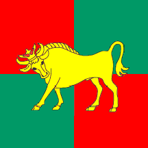 fourth gules parts is the or crowned bull, as a symbol of cattle
