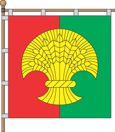 strips - red and green. In the centre is a yellow sheaf. (<www.brovary-region.com.ua/silrada/silrada.htm>)."