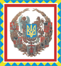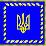 (the Small State Coat of Arms of Ukraine). The banner has a gold