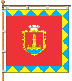 square panel, on a gules background the arms of city is