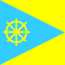 dark blue wedge, on which is yellow mill wheel (in diameter in