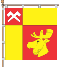 staff; in top from a staff a red field are two white crossed