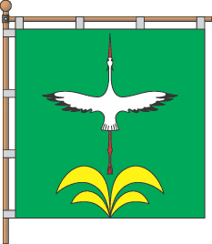 of village council session. Azure; flies upwards argent stork