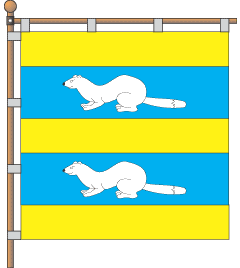 an azure field are two argent ermines, one above the second. The