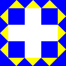 the gonfalon have an edging of dark blue and yellow triangles