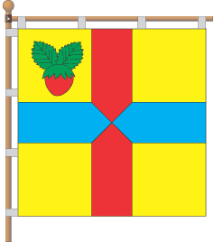 the horizontal blue and vertical red strips. In the top flagstaff