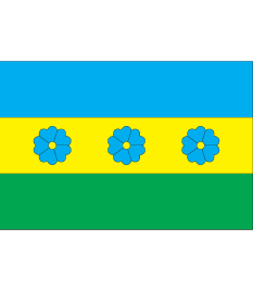 "Pale or, three flowers of flax azure with middle or. Dexter