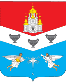 a Cupids. Gules; argent church with or domes. Azure; argent
