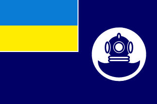 rescue vessel's ensign (same with an aqualung helmet in a white