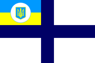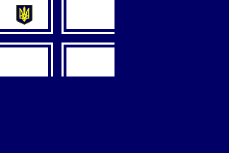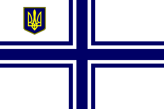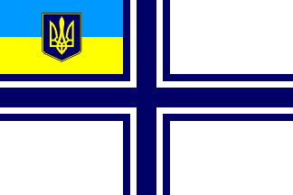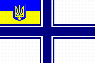 There are some reports of a Ukrainian naval ensign, jack and flag for the Ukrainian Border Guard.Flagmaster, 1994 showed the naval ensign as a blue cross throughout on a white field with the blue over yellow charged with the 'tryzub' (without the shield), in the canton. The flag of the Border Guard was reported as being green with a canton of blue over yellow and with the arms (golden trident on a blue shield bordered in gold). Flagmaster noted the lack of official documentation for these flags.
