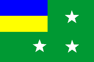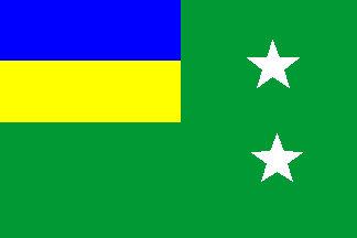 Green ensign with the national bicolour in canton and the