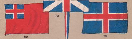 A reference to this design as a flag and as the canton of an ensign appears in "Flags of the World" (c.1894) by F.E. Hulme. He describes the ensign as being a curious modification of a St George's cross Red Ensign and continues; "It is from a sea piece of the sixteenth century. It was displayed at the poop of a vessel, while Fig.79 is the Jack on the bowsprit." If 16th century is correct, this flag was earlier than the Union