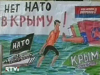At http://photos1.blogger.com/blogger/1980/2848/1600/Crimeia.jpg is this anti-NATO graffitti displaying a row of soviet-era flags, from left to right: