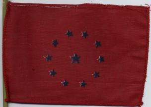 I have two sets of flags containing this flag. I bought the second set just to get the booklet that explains what each flag is. The front cover of the booklet says "HISTORICAL FLAG COLLECTION OF OUR AMERICAN HERITAGE". The back cover says "COMMEMORATION OF OUR BICENTENNIAL VONS GROCERY CO." The Red flag, ring of stars, is number 40 and is listed as "Confederate Battle Ensign" again with a paragraph: