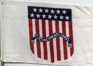 I have two sets of flags containing this flag. I bought the second set just to get the booklet that explains what each flag is. The front cover of the booklet says "HISTORICAL FLAG COLLECTION OF OUR AMERICAN HERITAGE". The back cover says "COMMEMORATION OF OUR BICENTENNIAL VONS GROCERY CO." The Cincinnati is flag number 27 in the set and is listed as "Banner of the Society of the Cincinnati." And then there is a three sentence paragraph: