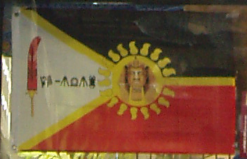 I came across this striking and beautiful UFE displayed in a storefront in Atlanta. I suspect it's the flag of those African-Americans (and others) who identify with the concept that the ancient Egyptian civilizations were black African in origin. The store owner explained some of the symbolism, but I can't find any other provenance.