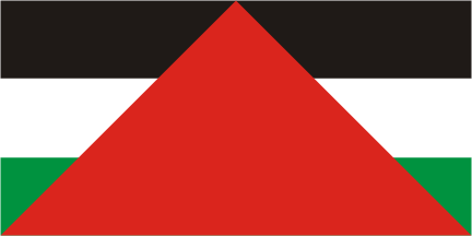 I saw a flag that looks exactly like the Palestinian flag- same colors and shapes, except the base of the triangle is situated along the length of the flag (instead of the width part) and the point of the triangle reaches to the other side of the flag (unlike the Palestinian flag where it just goes about 1/4 of the way in). Someone had it in New York City.