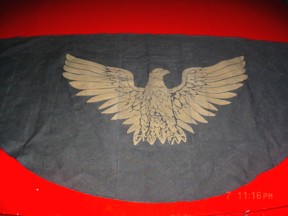 I hope you can help me identify a pennant I found amongst my late grandfather's possessions. He served in the U.S. Navy and I assume he brought the pennant home as a trophy from WW2. The pennant is triangular, measures approx. 12-1/2 inches long by 8-1/4 inches at the wide hoisting end; loop and clip still attached. The design is exactly that of the 1935-1938 reichskriegsflagge. It is two-sided, made of a durable cloth, with lots of chain stitching. I've exhausted all means of research available to me (which isn't that much) and I cannot find either a reference to, or a photo of, this pennant. Can you help?