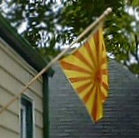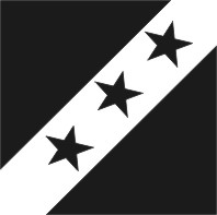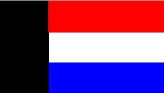 I live in the L.A. area, and saw a flag on a sticker on the back of someone's car. I did not recognize it at all, I was hoping you or somebody else may know it offhand. (I tried using the flag identifier, but couldn't find it.) The flag had a black hoist, with 3 horizontal stripes (red, white, and blue). In the black area, there was some sort of design in yellow. I have attached an illustration (without the yellow design). The car sped past me, I really didn't get a very good look at that yellow design.