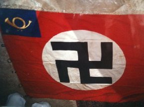 James´ speculations are interesting, but I feel are off the mark. This is not a Polish military flag. It is almost most likely some kind of the German service flag, although I don't have any idea of what kind.
