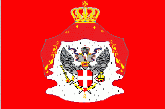 Order of St. John unknown flag: The flag has a ratio of estimated 3:5. It is a red flag with a coat of arms in its centre. Description of coat of arms: A red mantle, lined white, is topped by a golden crown. The mantle is covered with small golden Maltese crosses, the lining with small black rectangles (no ermines nor any other fur). The lining is superimposed by a grey double headed eagle. The eagle holds a scepter in its dexter claw and an imperial globe in its sinister claw. Between both heads is a blue ribbon topped by a crown. Another crown is superimposing the eagle’s throat. Upon the eagles breast is a white Maltese cross, superimposed by an asymmetric inescutcheon of the Order of St. John. As there is also a golden chain, shield and cross may be part of an order, unknown to me. The eagle I have expanded here. A photo of the doorplate is also added. The inscription is: "Sovereign Order of Saint John of Jerusalem; OSJ + Knights of Malta +," (The + is a Maltese cross.)