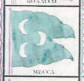 In the Winter 2003 issue of the "Flagmaster" (number 111) they feature the Barnes Flag Sheet, published in Philadelphia in 1837. On pages 10-11 they reproduce the sheet and it shows a banner from Mecca that is green with three white crescents. Is this the one you are looking for?