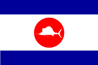 I have several pieces of Homer Laughlin Best China U.S.A. with the marking on the back AAB-11. The Flag on the front of the china is a rectangular flag, with blue stripes across the top and bottom with a red dot and a sailfish in the middle of the dot. Could you please tell me what flag or who it was made for?