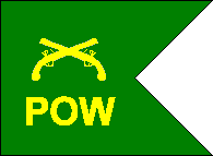 I have a small swallow tail flag color green appears to be cotton. Sewn on it at the top is a four digit number, below that are two crossed flintlock pistols and below that is "POW". I got this in a military items lot with no further information. Any information or insight from you would be appreciated.