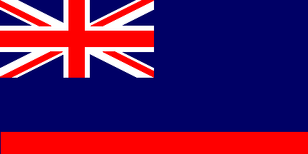 Another painting has two ships that have Blue Ensigns and Union Jacks with a red stripe along the lower edge. I have not seen the painting, which is in Liverpool Maritime Museum, but was sent the following description from the curator: