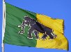 This has been identified as the arms on the former vertical flag of the German Municipality of Simmerath, part of the Municipal Community of Aachen, in Northrhine-Westphalia, which was in use before 1972.