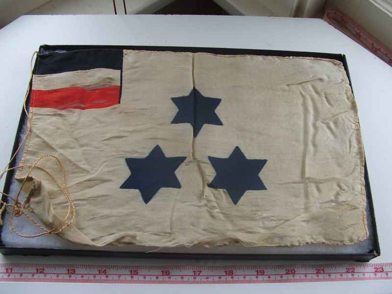 Saw this on e-Bay, with this description: "I have been told this is a German diplomat flag from the Weimar era. I'm NOT sure. The flag is very fragile and made of silk. It has some longitudinal tears. It measure about 8"x12'"