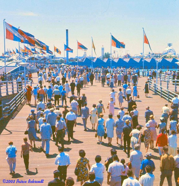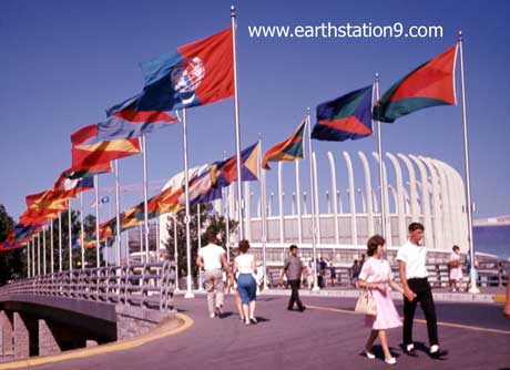 [These two pictures were taken at the World's Fair in 1964-1965. They were sent to the list by Esteban Rivera (7 July 2010), but overlooked. The first (#18a) is taken at the main entrance ramp to the Fair. The second (#18b) is taken at the Ford Rotunda outside the American car maker's pavilion at Ford Bridge. On the right picture (#18b), one can see the Fair's flag, but the rest of the waving flags are unknown. - UFE Editor]