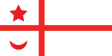 Driving in Ottawa last week, I saw on the back of a car next to mine a sticker with this flag. I have never seen anything quite like it. The sticker was roughly 3 by 6 inches. On a white background a thin red Scandinavian cross with a five pointed star and crescent. All charges and the cross were a dark red. Do you have any idea?