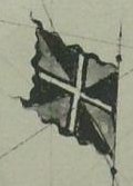 I’d direct all interested parties to our own website material on the Order cross on gyronny flag (blue and gold) and the Red bordered quina, where these two flags are addressed. These two FotW-ws sections, by the way, include mainly material contributed in 1997 and edited shortly after. This UFE report should be marked as identified (albeit these flags on old maps were often fanciful and did not always faithfully shown what actual flags looked like) and the long, fairly accurate, and unrelated story about Ceuta can be safely placed on the Ceuta (Spain) page.
