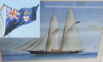 It has been suggested that you might be able to identify the defaced ensign and yacht in the attached pictures. If you can help it would be very much appreciated, if I am completely up a gum tree my apologies for bothering you. (Pictures dated 1884. Location Naples).