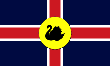 I'm currently watching a football match on TV, live from Perth, Western Australia. Someone in the crowd is waving an interesting flag which looks like it may be an alternative design for a flag for Western Australia - anyone know anything about it? It's a red cross, fimbriated white, on a dark blue (or possibly black) background, with the state emblem of a black swan on a yellow disc in the centre.