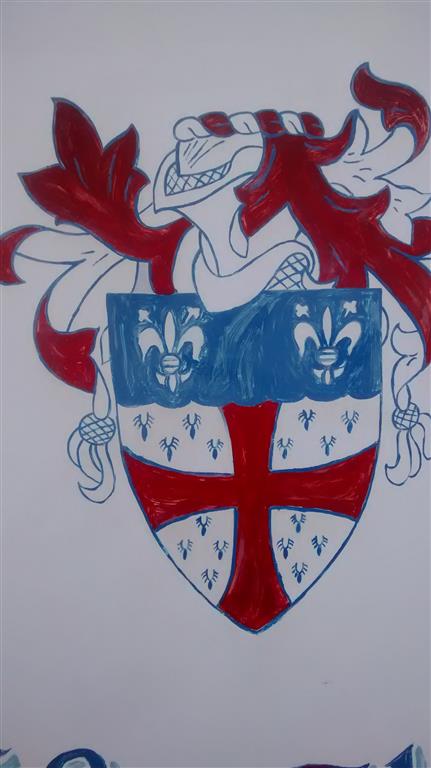 The original poster, Imnimo, said "I saw this flag flying outside a gift shop in St. George's, Bermuda. It's a bit hard to see because it's wrapped around the pole, but it looks like it's the same as the coat of arms painted on the side of the building. After a bunch of Googling, I haven´t been able to find it anywhere - is this just a random family crest in flag form, or is there more too this flag? As far as I can tell, it isn't the flag of any Bermuda municipality."
