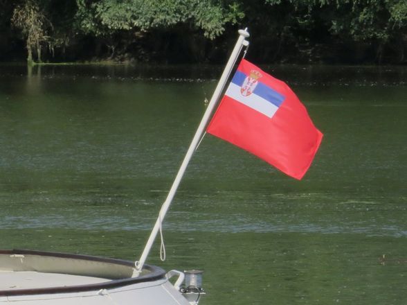 Also, on today's practice for military parade in honour of Liberation day of Belgrade, at which President of Russian Federation Putin will be present, the river flotilla was using another flag (#68b). By it's position it should be a military navy jack - Vojnopomorska pramcana zastava. However, I couldn't find any confirmation and hope you'll be able to identify it.