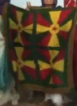 - Image #81a - a square flag, split into four equal areas where a red five-pointed star in the middle, with other colors related to Kurdish symbols (yellow and green), as seen on 1:27.