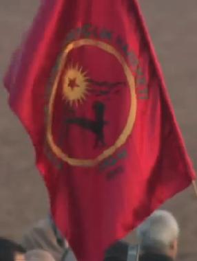 - Image #81b - a horizontal red flag, , with other colors related to Kurdish symbols (yellow and green), as seen on 1:29 onwards.