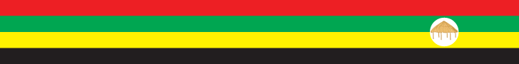 The website shows a flag of four equal horizontal bands of red over green over yellow over black, with a white disc in the fly over the two central bands, superimposed on which is a a golden hut. A coat of arms (shown below) is also illustrated on the website.